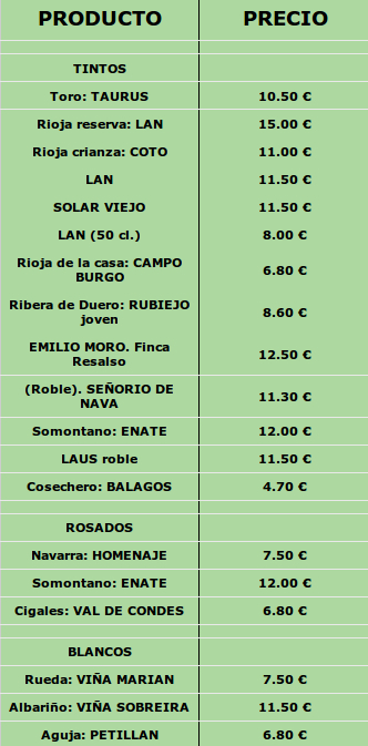 Carta de vinos